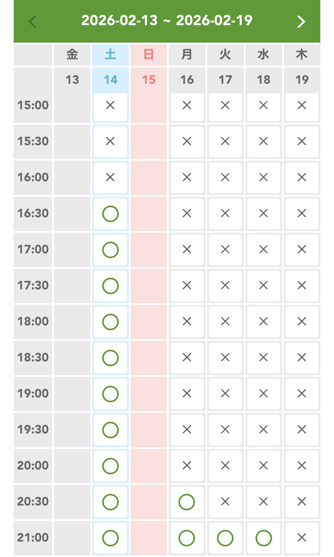 20:30や21:00と、夜遅い時間のみの空きとなっておりまして、